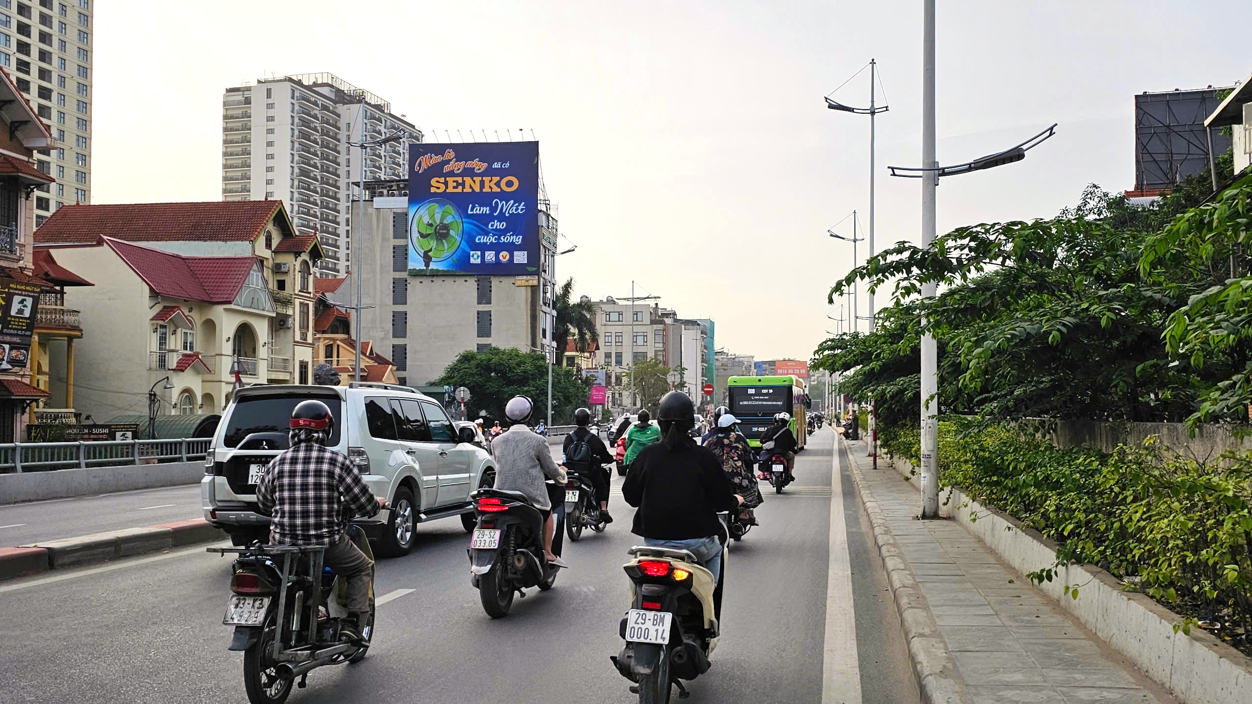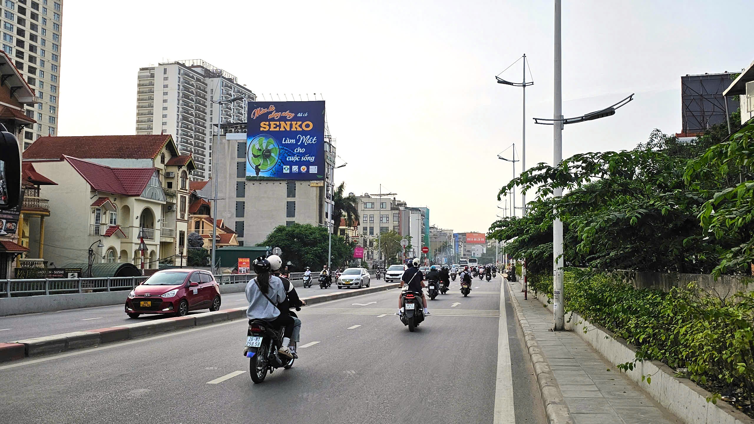 Về ước lượng traffic, theo đặc thù tuyến Đê La Thành và dữ liệu khảo sát OOH khu vực nội đô Hà Nội, lưu lượng phương tiện qua đoạn này ước đạt 45.000 – 60.000 lượt/ngày, bao gồm xe máy, ô tô cá nhân, taxi và xe dịch vụ. Lượng người tiếp cận gián tiếp (pedestrian, cư dân xung quanh) ước tính thêm 15.000 – 20.000 lượt/ngày, nâng tổng khả năng tiếp cận lên khoảng 60.000 – 80.000 lượt/ngày.
